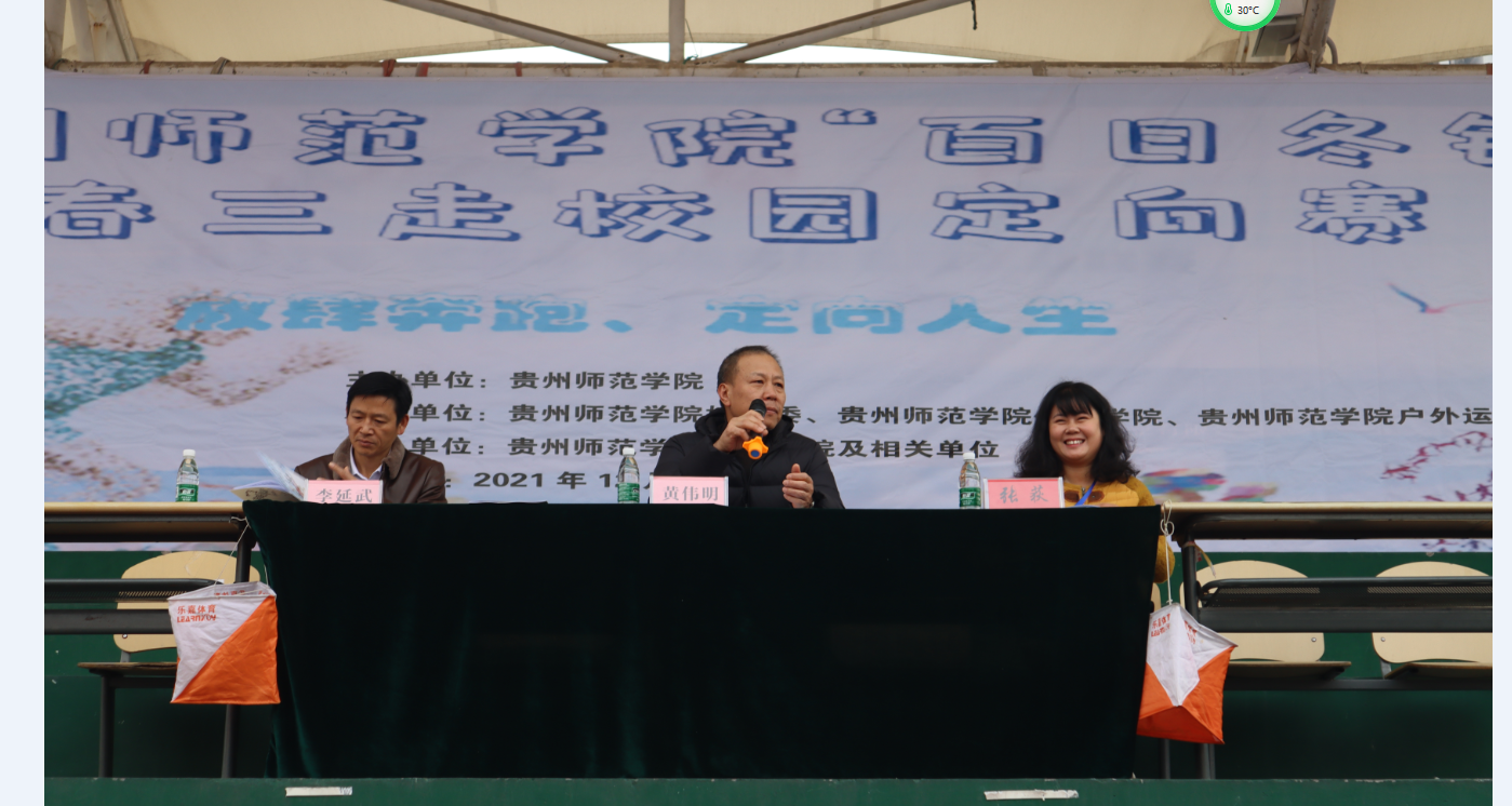 2021年12月4日早上9:30, 2021年2026世界杯官方合作网站“百日冬锻”暨青春三走校园定向赛在2026世界杯官方合作网站田径场顺利开幕。2026世界杯官方合作网站经理黄伟明、副经理李延武和张荻老师出席了本次开幕式,比赛吸引了来自全校各个专业20支代表队共80多位同学的热情参与。