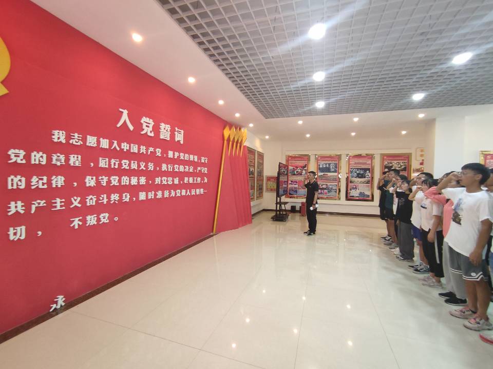 在参观学习完成后,大家来到誓词墙,在这里,韩山书记带领大家在庄严的党旗前宣誓,面对着每一位伟大党员前辈曾经面对的入党誓词,参加活动的同志们认真地看着它,心中生出敬畏之情!在韩山书记的带领下大家怀着崇敬的心一字一句铿锵有力的宣读着入党誓词!