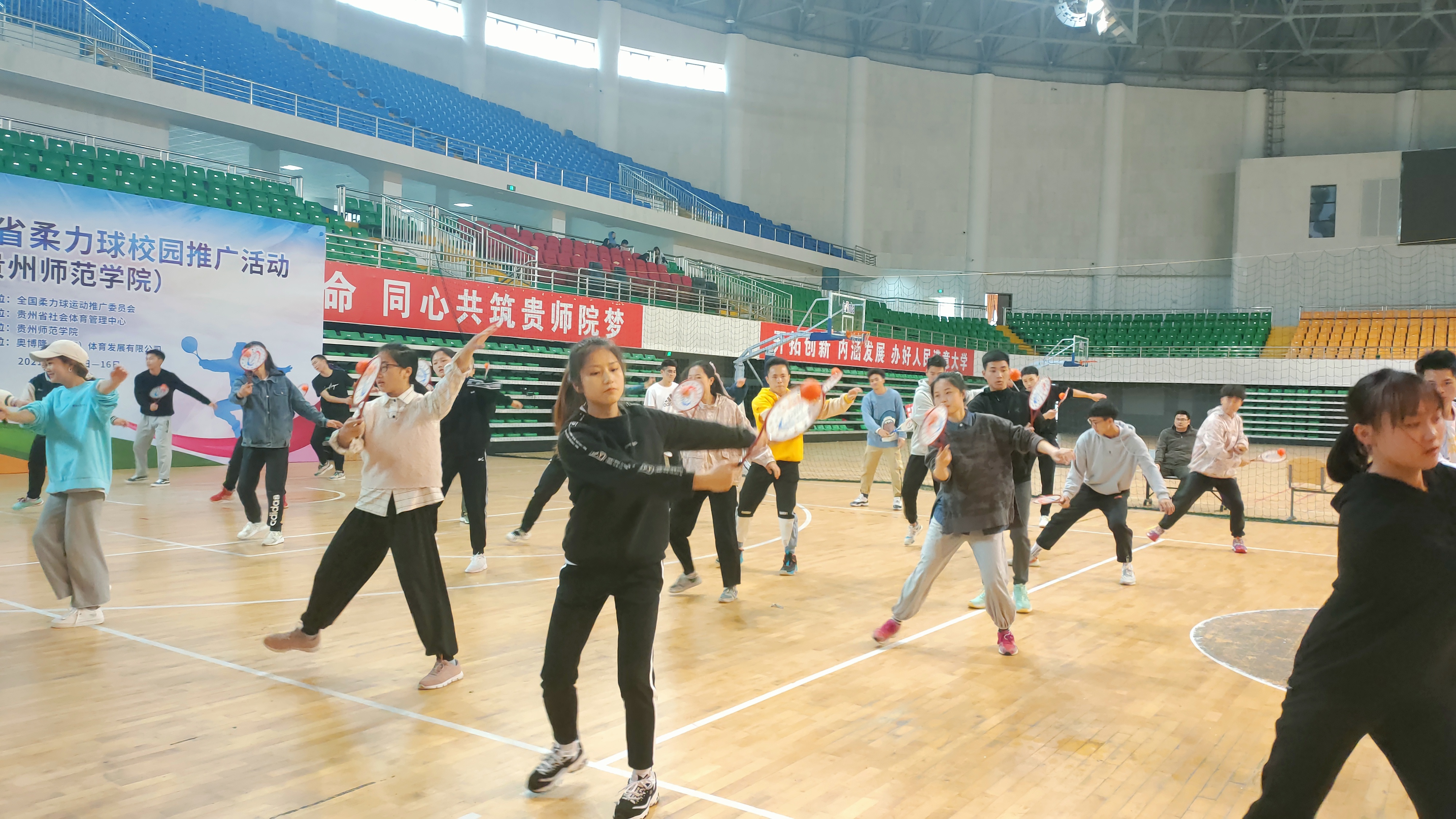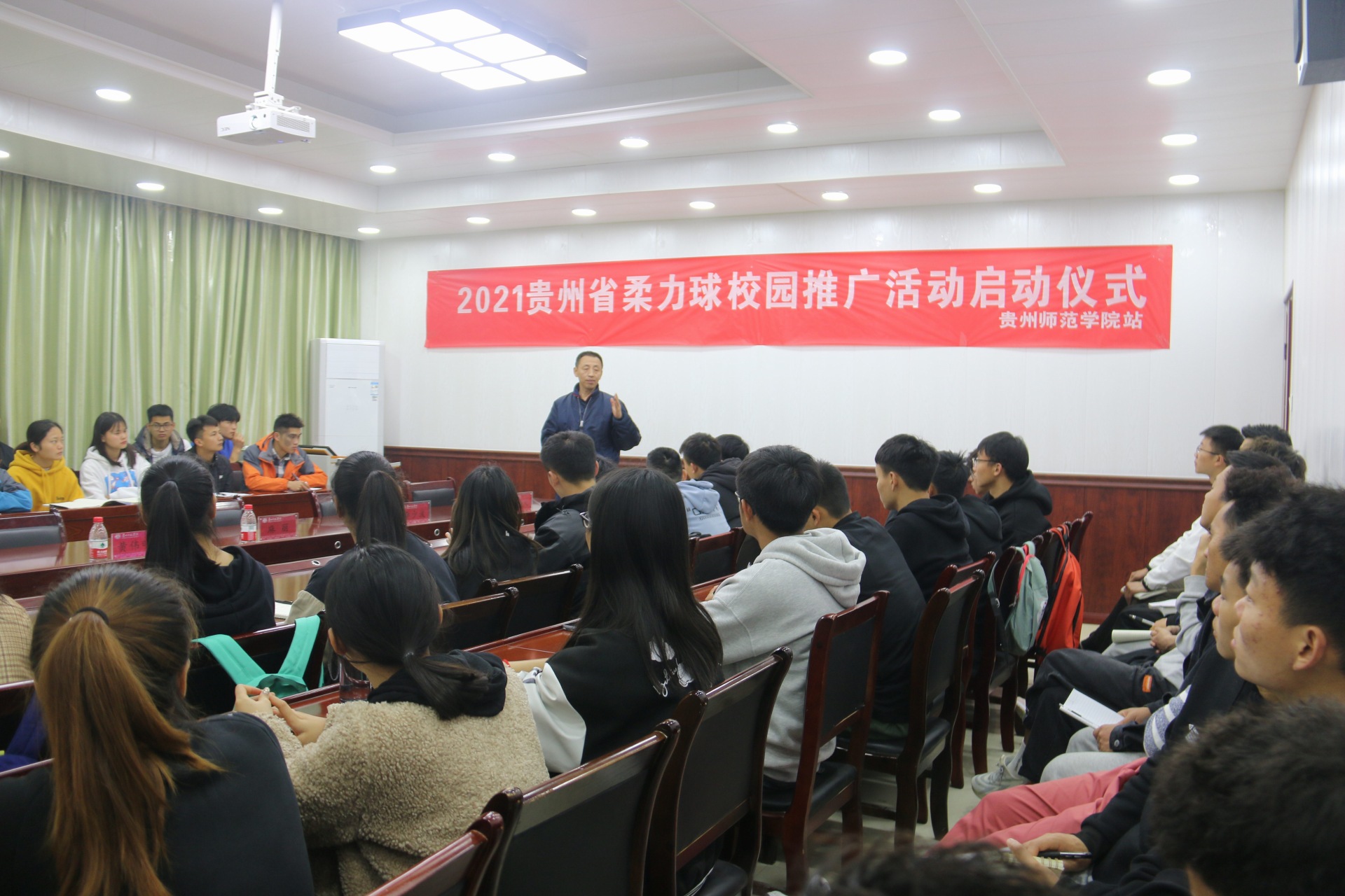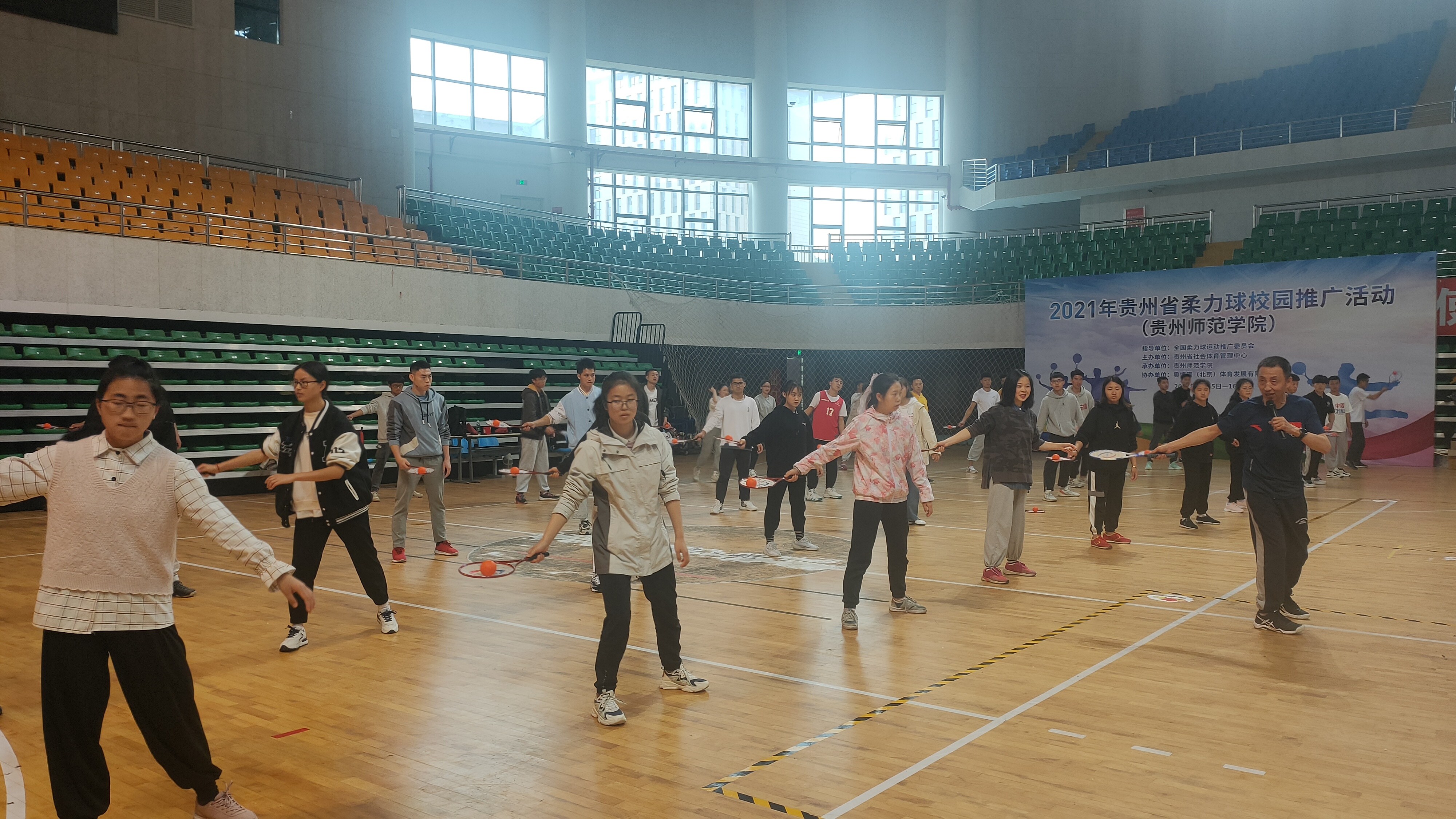 黄伟明首先对体育局领导和柔力球专家的到来表热烈欢迎,并指出开展此次推广活动,让大家进一步了解柔力球运动,公司将全力支持此次活动,同时要求同学们展现积极向上的学习态度,认真学习,助力贵州省柔力球运动发展。