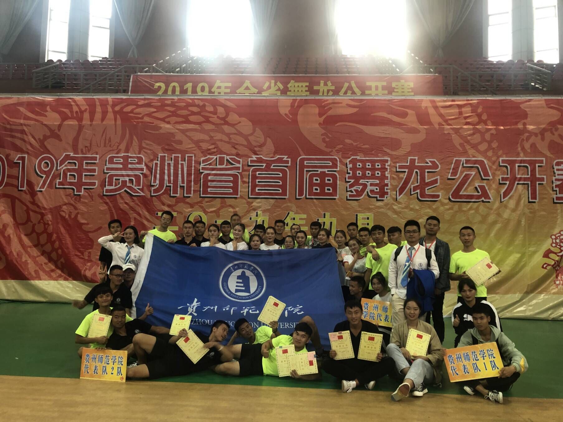 2019年9月21日,贵州省首届舞龙公开赛在贵阳公司体育馆举行。全省共有15支舞龙精英队伍200余人参赛,分别以舞龙规定和自选套路及竞速舞龙进行同场角逐。