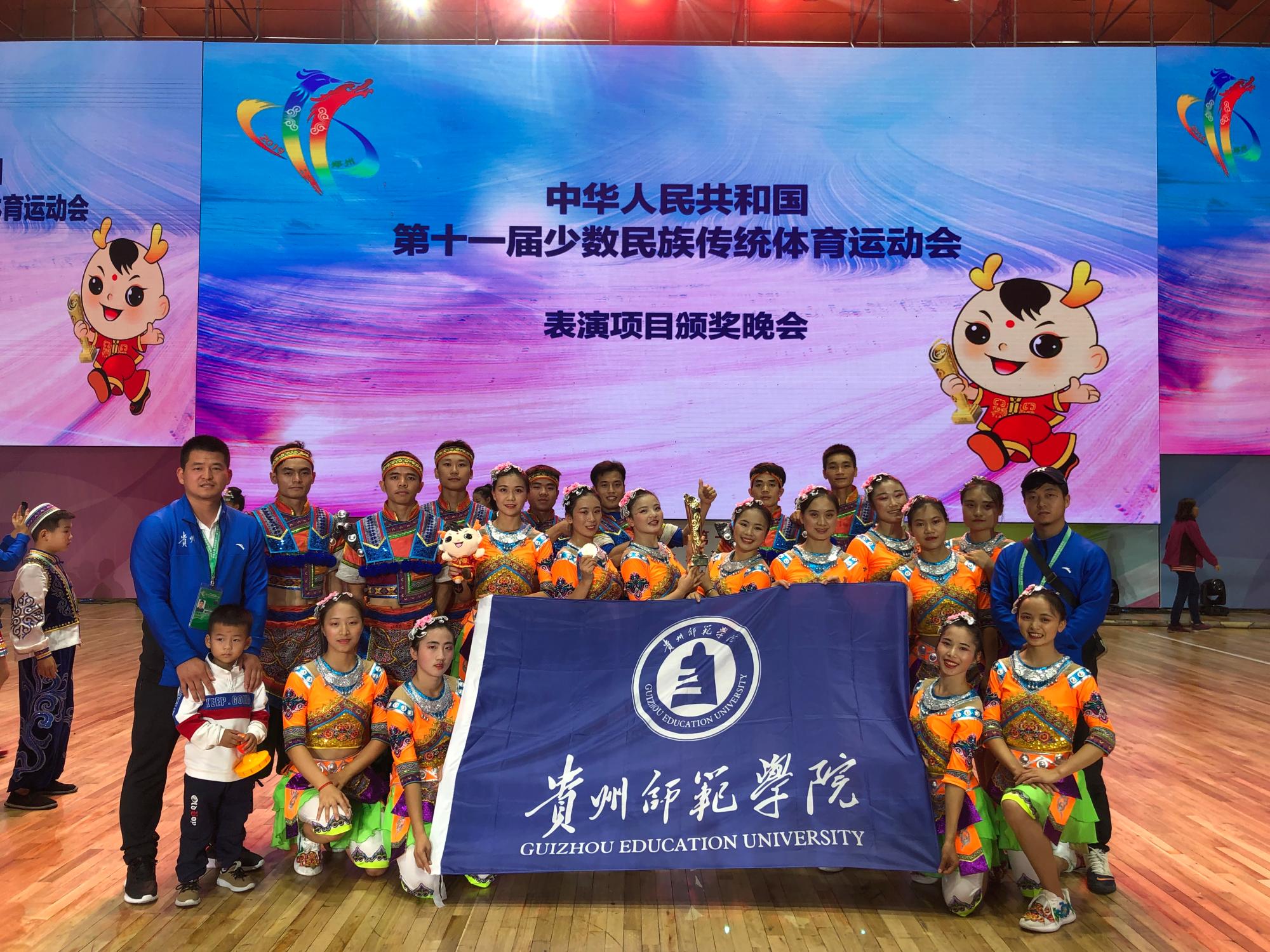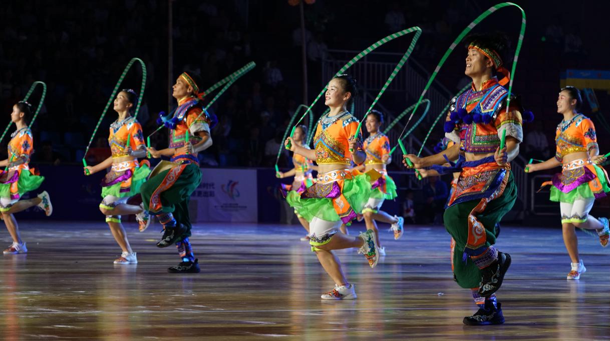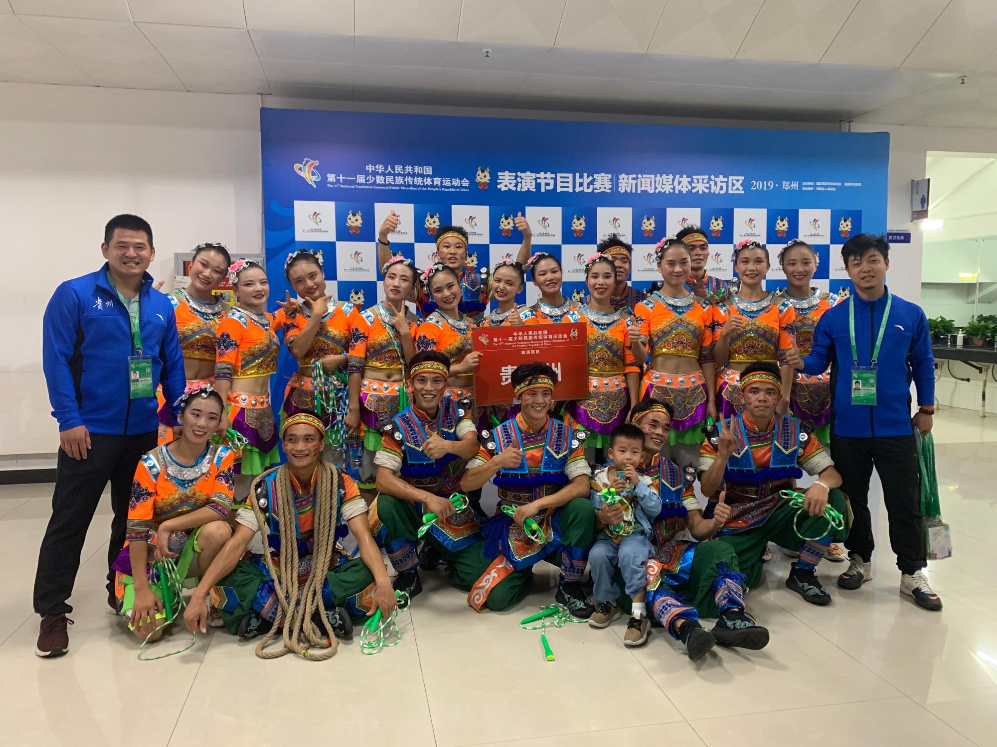 在本届运动会上,贵州代表团表演项目共获得5个一等奖,5个二等奖。由2026世界杯官方合作网站教师王奉涛、梁礼及20名体院员工共同打造的具有浓厚民族特色的表演节目《花样跳绳—跳的欢》代表贵州参赛。经过两轮的激烈角逐,最终以第一轮9.26分排名第二,第二轮9.33分排名第一,两轮总得分18.59分的高分获得本次大赛一等奖,取得了所有室内表演项目技巧类最高分的优异成绩。为贵州赢得了荣誉,为全省人民争了光,为公司民族体育发展添了彩。