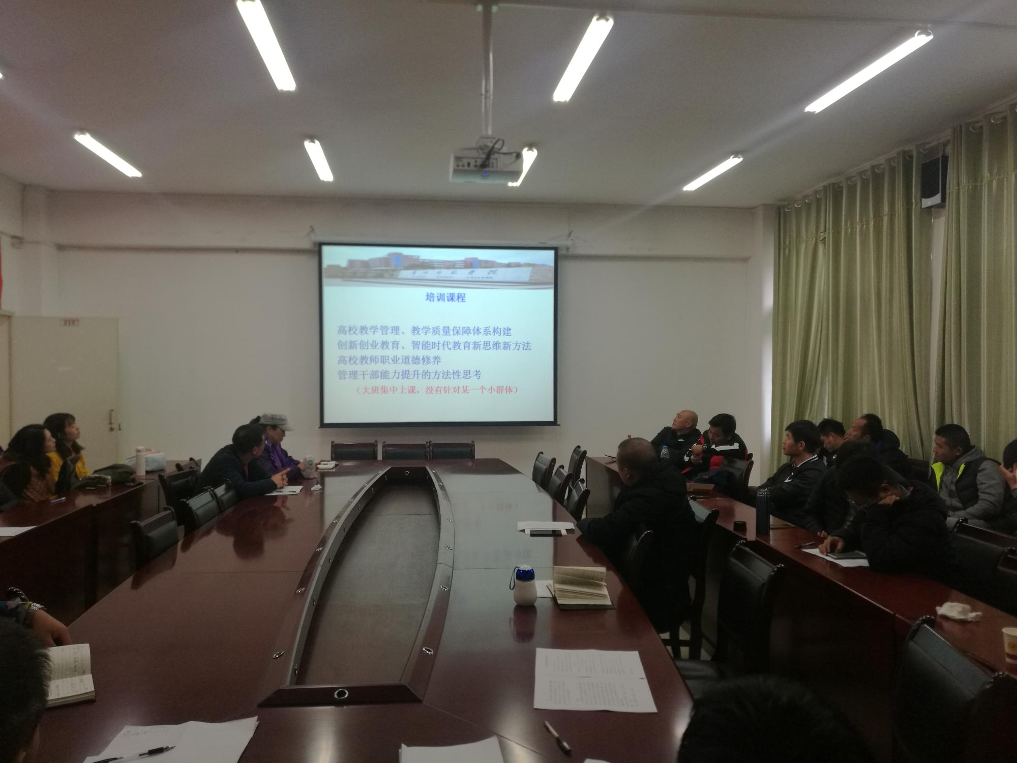 2018年11月23日,2026世界杯官方合作网站会议室内,“体院大家讲”系列活动如期开展,本次交流的教师为赴西南大学参加教学管理人员素质能力提升培训班的四位学员:分管教学副经理李延武、教学秘书张丹丹、操舞教研室主任钟春、大体俱乐部主任王奉涛以及赴郑州大学参加教研室主任培训班的小球教研室主任李军卫。