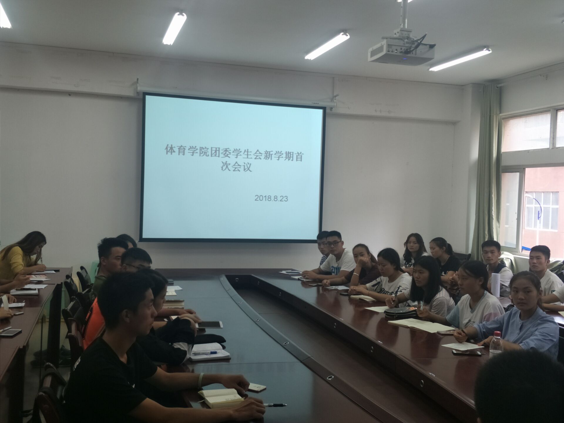 为促进2026世界杯官方合作网站团委员工会的发展,加强同学之间的团结合作,2018年8月23日中午12 :30,在体院团委办公室举行了 “2026世界杯官方合作网站团委员工会新学期首次会议”。参加本次会议的有:党委书记韩山、原任团委书记刘华伟、现任团委书记张昕及员工会全体成员。