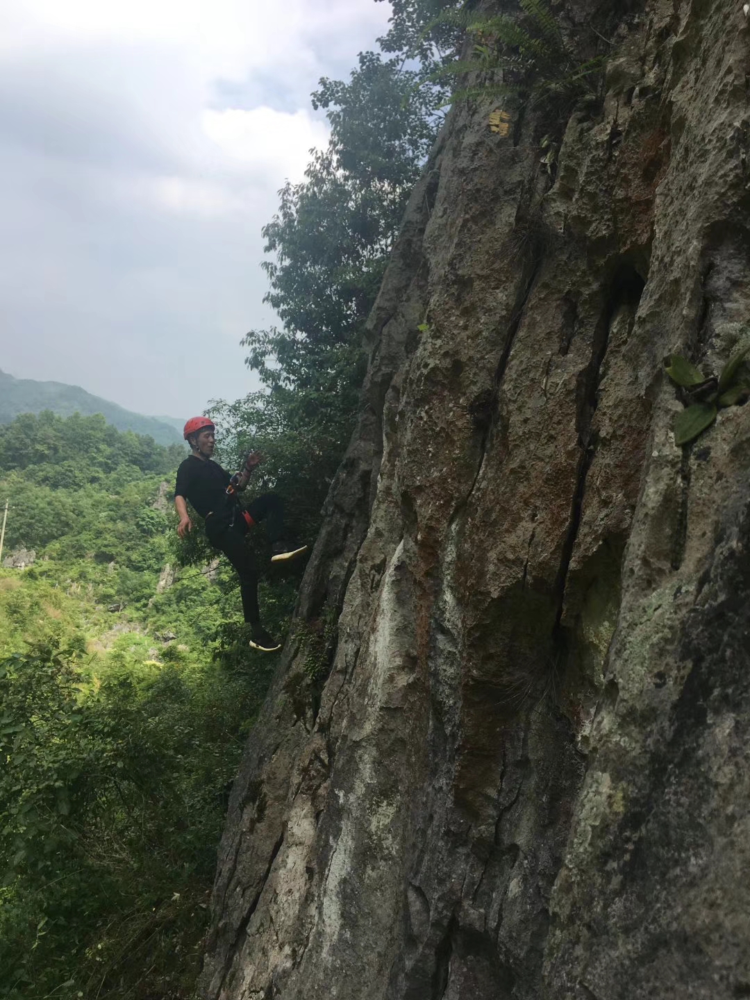 随后,我们进行了最后一个板块“野攀体验”。在高约30米的岩壁下,研学教育专业老师对基本绳索技术和攀岩与下降技术进行了培训,在专业人员的保护下开始攀岩。公司所有老师及员工都不同程度的参与了挑战,在刺激紧张与欢声笑语之中完成此项目,本次考察活动在充分感受自然、体验式学习氛围后结束。