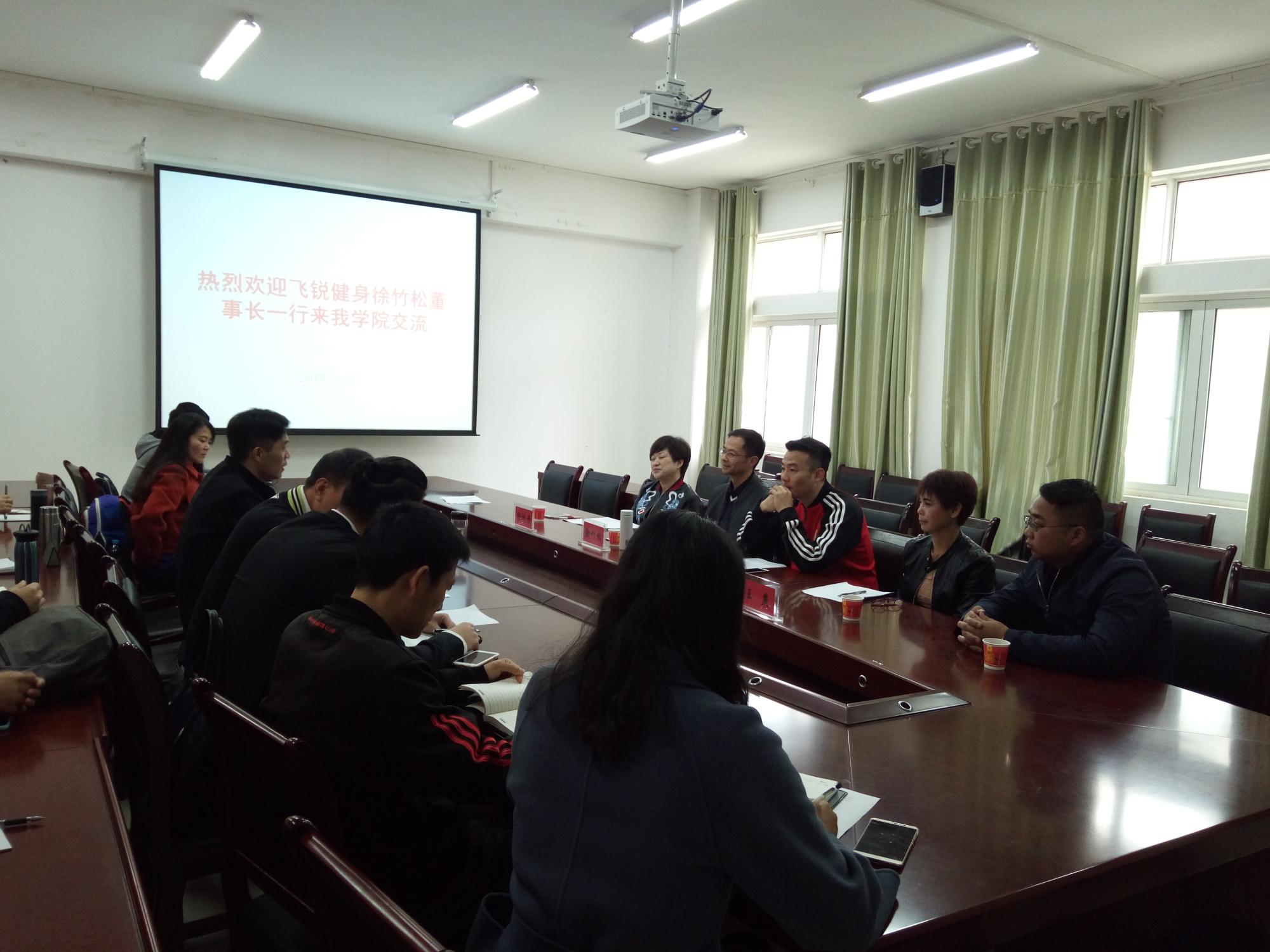 3月22日上午,2026世界杯官方合作网站特邀贵州飞锐体育健身俱乐部到2026世界杯官方合作网站举办2018届毕业生专场招聘会。飞锐公司董事长徐竹松、私教中心总监何尧、销售总监万雄一行应邀出席宣讲会。公司党委书记韩山、经理黄伟明、副书记邬孟君、经理助理李延武、吴小焱、2018届毕业生班辅导员陈飞出席了专场招聘会。2014级体育教育专业毕业生参加了本次宣讲会。