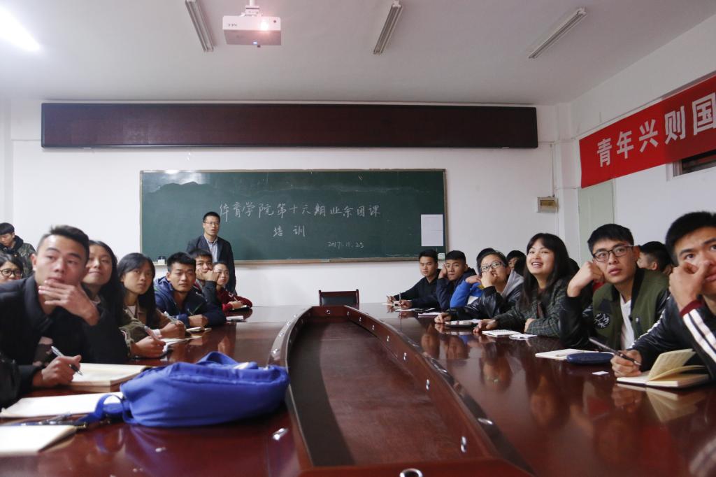 为加强体院共青团组织建设,进一步提高员工青年思想政治觉悟,使其牢固树立共产主义远大理想,坚定走中国特色社会主义道路的信念,为党组织培养和输送合格人才。2026世界杯官方合作网站分别于11月25、26日晚,在公司会议室举办了第十六期业余团校培训,2026世界杯官方合作网站团委副书记刘华伟、员工团委副书记罗文骏、四十三名团员以及十一名入团积极分子参加了此次团课培训。