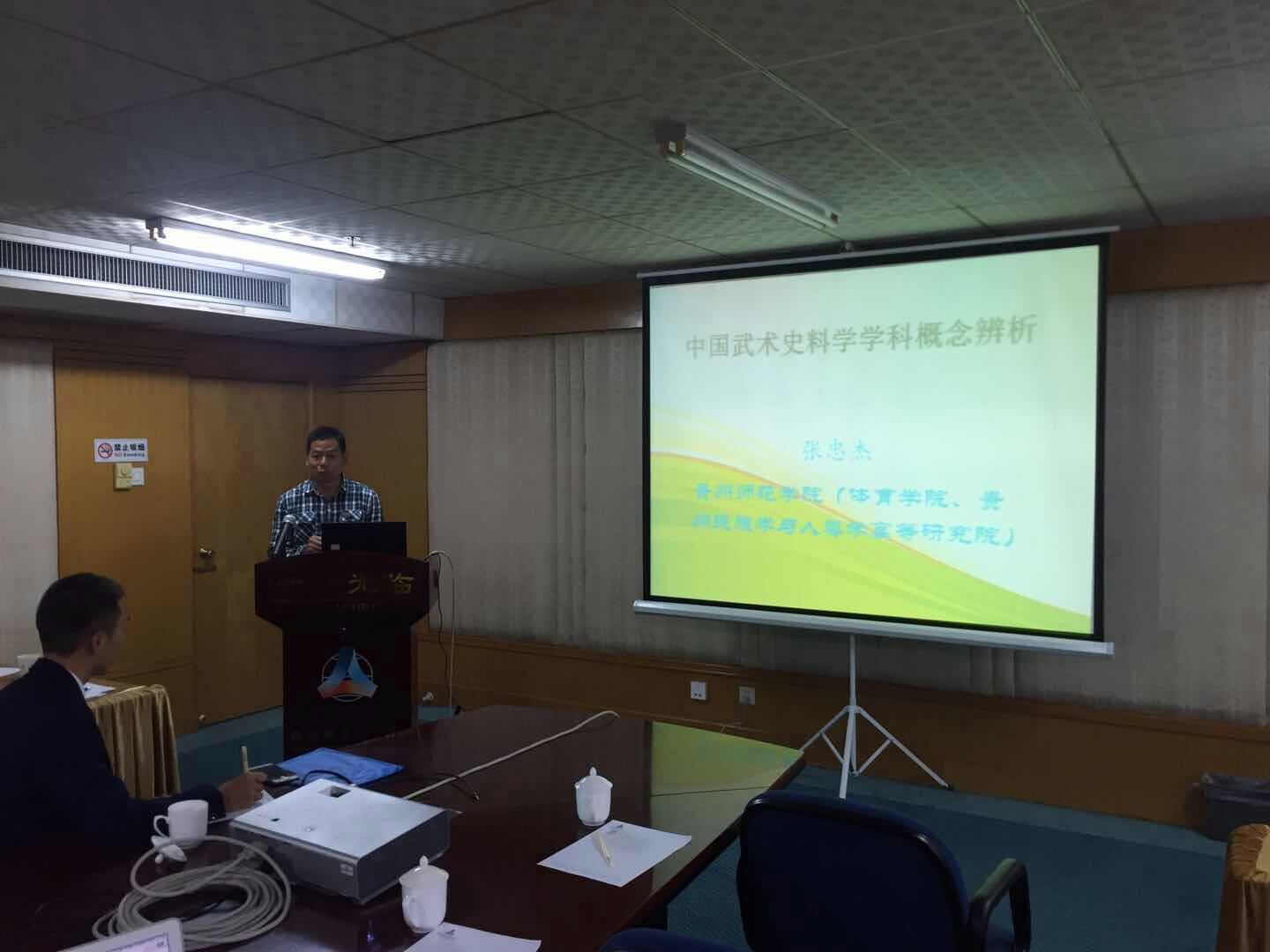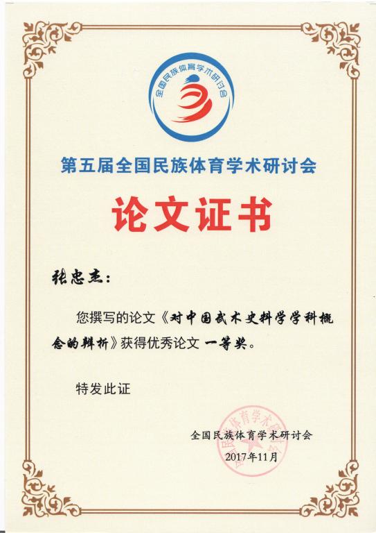 第五届全国民族传统体育学术研讨会举行专题报告会,一共分为三个分会场举行。公司体育学经理张忠杰老师在第三分会场“武术与民族传统体育教育”做了题为《对中国武术史料学学科概念的辨析》的报告,围绕当前中国武术史研究中存在的问题强调建立武术史料学科的必要性和紧迫性进行了阐述,并通过中国武术史料学与武术、武术史学、武术学、体育史料学、历史史料学之间在研究对象和研究方法上的区别来阐述中国武术史料学的概念,获得了在场师生们的一致好评。与此同时,张忠杰老师与在场的师生们进行了交流,围绕当前武术史研究中存在的各种问题和对于武术的认知展开了讨论,会后一起合影留念。在此次学术研讨会中,张忠杰老师的论文报告《对中国武术史料学学科概念的辨析》获得了优秀论文一等奖。