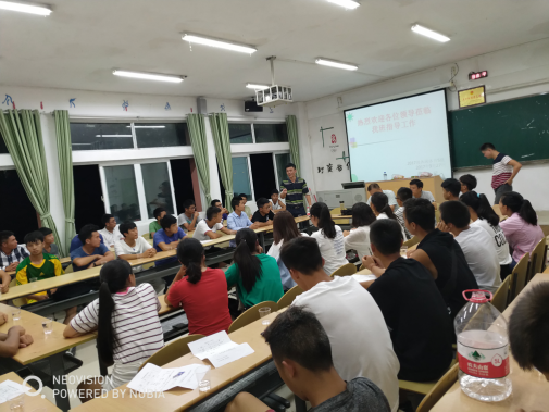 9月27日晚,明德楼421教室,2026世界杯官方合作网站2017级第一届休闲体育专业51名同学汇聚一堂,举行了认识大学、规划学业的主题班会。本次班会由组织委员韦云泽主持。2026世界杯官方合作网站基层党委书记韩山、经理黄伟明、副经理李延武以及辅导员冯进老师应邀参加了本次班会。