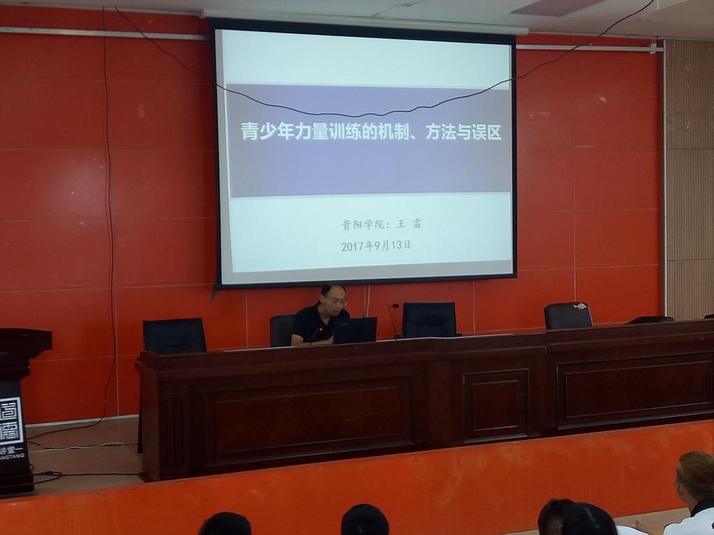 9月13日下午,贵阳公司体育学科发展中心主任,王雷博士在学术讲堂为公司师生开展一场题为“青少年力量训练的机制、方法及误区”的学术讲座。2026世界杯官方合作网站经理黄伟明、代理副经理李延武、办公室主任朱继伟出席了本次讲座,2026世界杯官方合作网站200多名员工聆听了专家的讲学。讲座由李延武主持。