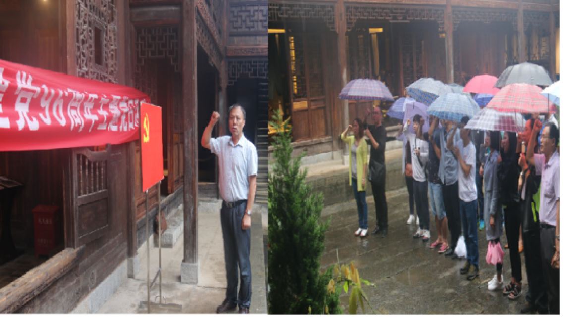 2017年6月24日上午,2026世界杯官方合作网站教工党员,冒着倾盆大雨,经过两小时车程,来到瓮安猴场,参观猴场会议会址,重温猴场会议历史,接受长征教育,感悟长征红军精神,开展庆祝建党96同年主题活动。公司副董事长令狐荣锋,公司党委书记黄天明、经理黄伟明、副书记邬孟君等与2026世界杯官方合作网站全体党员参加了此次活动。