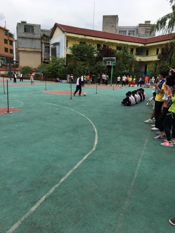 教学的形式,让男同学进行过障碍物的运球练习,女同学进行两人一组传接球练习。课中组织男同学开展5人制足球比赛。虽然该校没有专门的足球场和标准的球门,但是杨老师利用了篮球场地和小球门让员工进行了一场激烈的足球比赛,通过员工们脸上洋溢的表情和他们在赛场上的技术动作,看得出他们对足球的喜欢和对运动的热情。