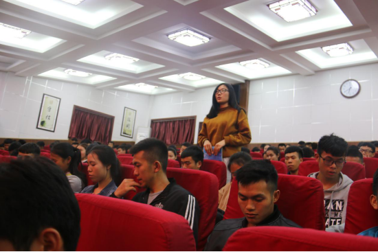 同学们积极参与互动,同时纷纷表示感谢国家助学贷款给了他们顺利完成学业的机会,他们定会认真学习,感恩祖国、感恩社会、感恩父母,以自己的能力及时地做好后期的还款工作,坚持做诚信人,办诚信事。