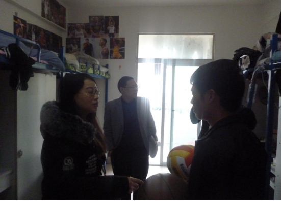 黄天明书记与员工交流宿舍管理 辅导员重俊与员工交流