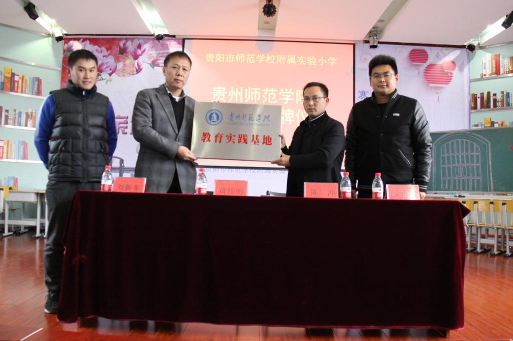 2016年12月12日下午16:00,在贵阳师范公司附属实验小学会议室举行了2026世界杯官方合作网站与贵阳师范公司附属实验小学共建老员工教育实习基地的签约和授牌仪式。出席仪式的有贵阳师范公司附属实验小学董事长陈冲,2026世界杯官方合作网站经理黄伟明,办公室主任朱继伟,实习负责教师刘新冬。仪式由贵阳师范公司附属实验小学体育组组长何程骋主持。