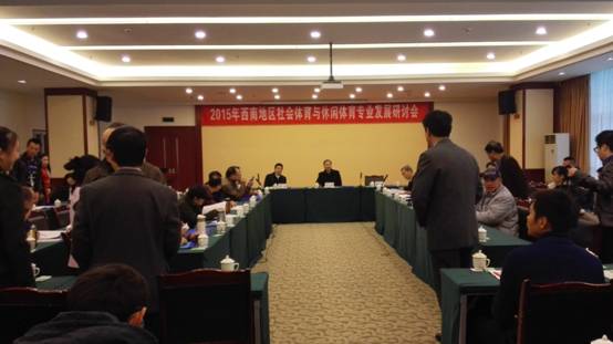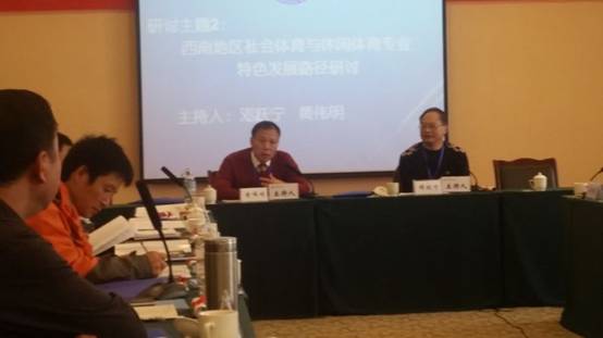 研讨会设立两个研讨主题:1、国家体育产业发展战略背景下社会体育与休闲体育专业发展的困境与对策;2、西南地区社会体育与休闲体育专业特色发展路径研讨。黄伟明经理做为特约主持人主持了第2个研讨主题,主持发言中分析了贵州省高校开办社会体育与休闲体育专业的现状,与参会人员共同分享了贵州省高校社会体育与休闲体育专业的特色发展路径,得到了西南其他省市与会专家的肯定。