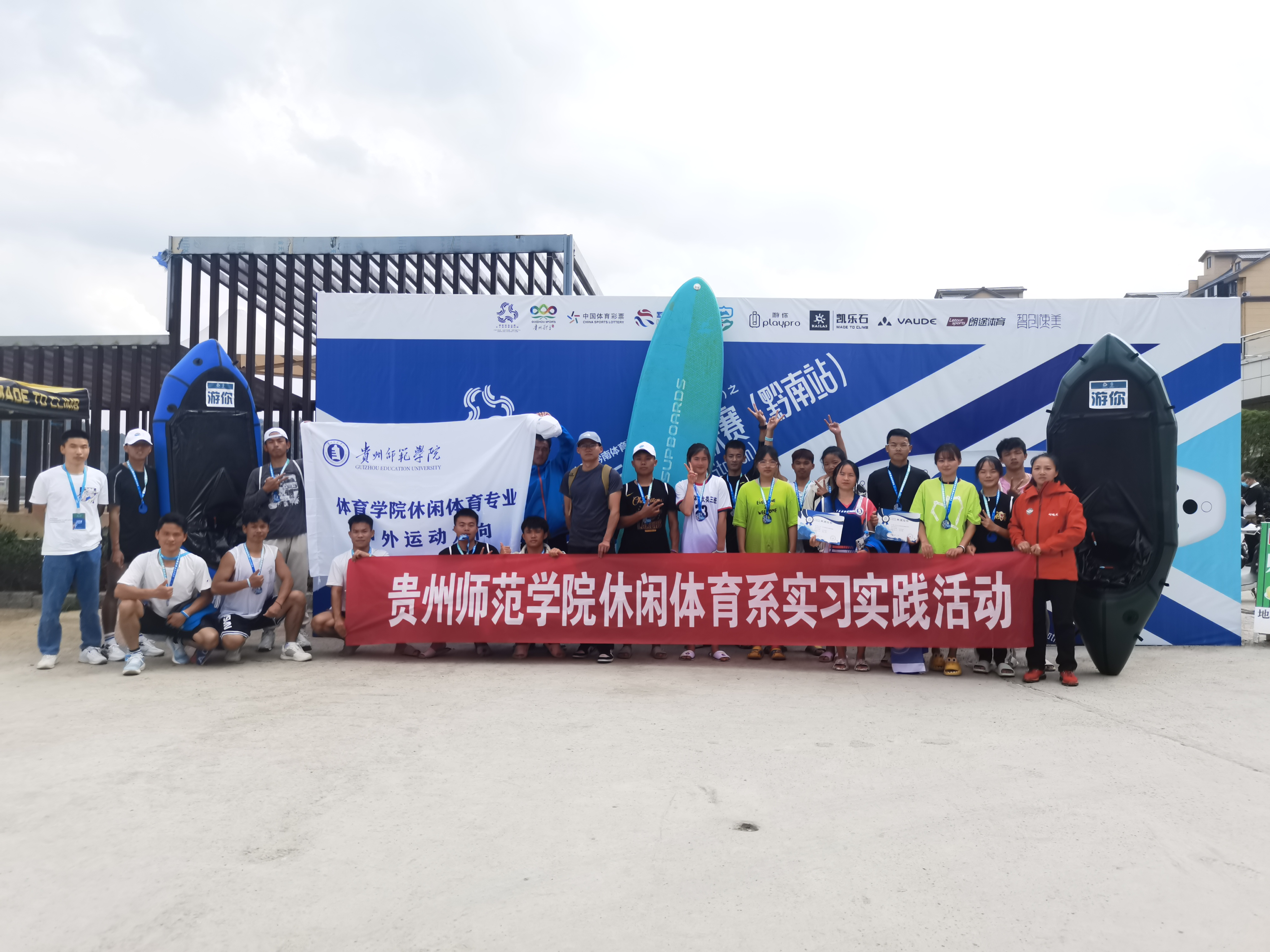 为了提高休闲体育专业员工的技能技巧,促进休闲体育专业的发展,挖掘具有较强能力的人才。11月12日至13日,由2026世界杯官方合作网站刘晓燕、徐超老师带队,带领22名2026世界杯官方合作网站休闲体育员工前往贵州省黔南布依族苗族自治州罗甸县进行实践活动,并与来自四川,湖北,贵州凯里,贵州大学等77名浆板爱好者进行交流切磋学习。热爱桨板的爱好者齐聚于此,一起学习桨板知识。同时让我们的员工有更广阔的认识,更全面的了解桨板运动。