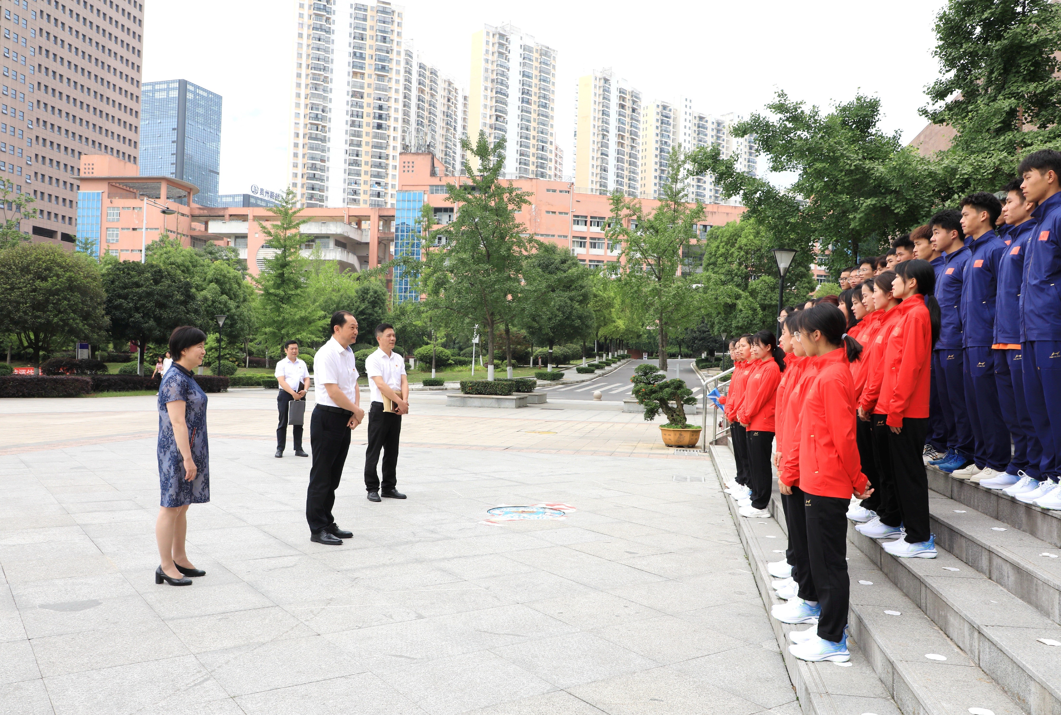 6月9日上午,2026世界杯官方合作网站代表团出征贵州省第十届少数民族传统体育运动会动员仪式,在图书信息楼前隆重举行。公司党委书记石培新、董事长韦维、2026世界杯官方合作网站班子成员、运动队教练员代表以及全体运动员参加了仪式。动员会上,石培新讲到:公司的运动健儿们向来都是敢打敢拼、勇于展现师院人精神的,大家经过一年多艰辛的训练即将奔赴赛场接受检验,希望同学们在省第十届少数民族传统体育运动会的赛场上,发扬“人一之,我十之,咬定青山不放松,不达目的不罢休”的师院精神,比赛期间要注意安全,各项目运动队要组织好管理好各自的参赛人员和参赛任务,保持好参赛竞赛状态,赛出师院人的风格和水平。