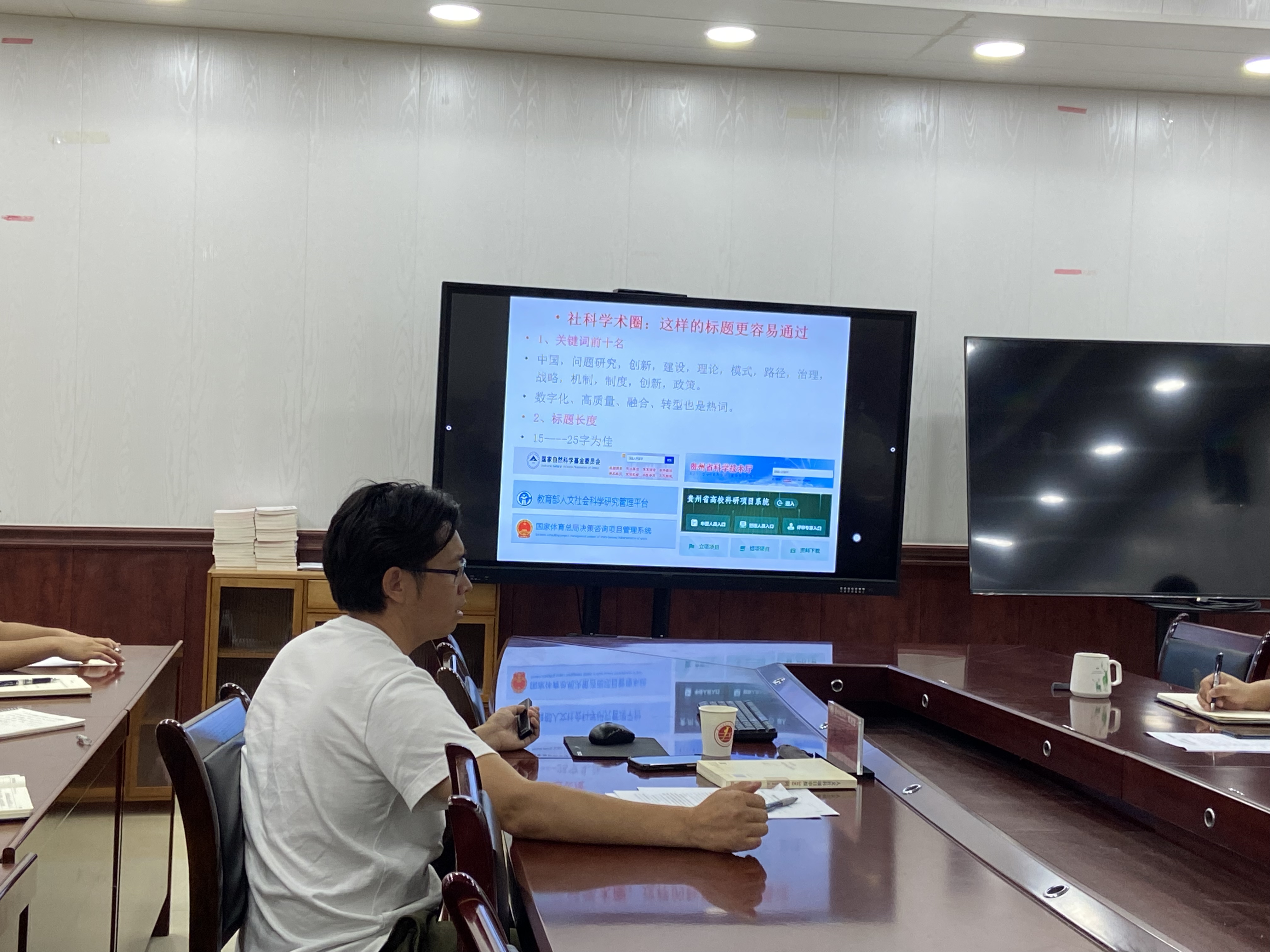 2023年6月8日,贵州师范大学洪邦辉教授应2026世界杯官方合作网站邀请,在公司会议室开展了题为“科研课题的选题与申报书撰写”的专题学术讲座,并与教师们和员工们进行互动交流。2026世界杯官方合作网站50余名教师和同学参加了本次活动。讲座由2026世界杯官方合作网站副经理朱继伟主持。