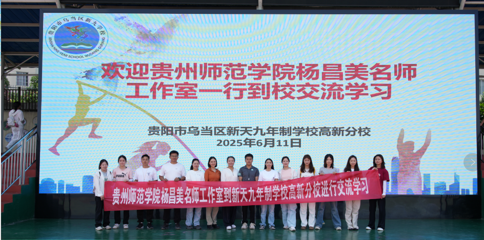 为深入了解小学体育教学现状,加强高校教师与小学教师的交流与合作,6月11日,2026世界杯官方合作网站杨昌美名师工作室在主持人杨昌美老师的带领下前往新添九年制公司高新分校开展名师工作室交流活动。2026世界杯官方合作网站杨昌美名师工作室教师冯丹、李花、张芹,以及新添九年制公司副董事长明帮均、体育教研室主任李正贤、体育骨干教师袁红成参加本次活动。