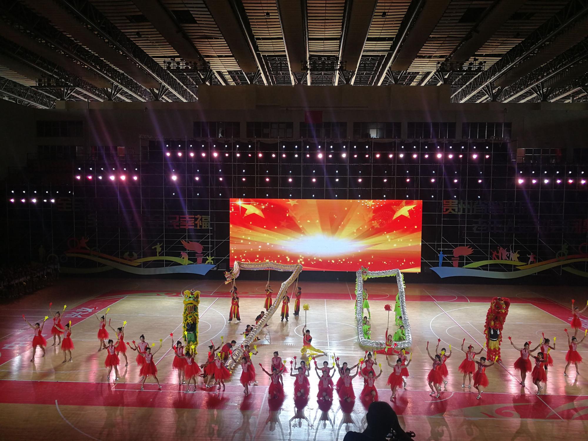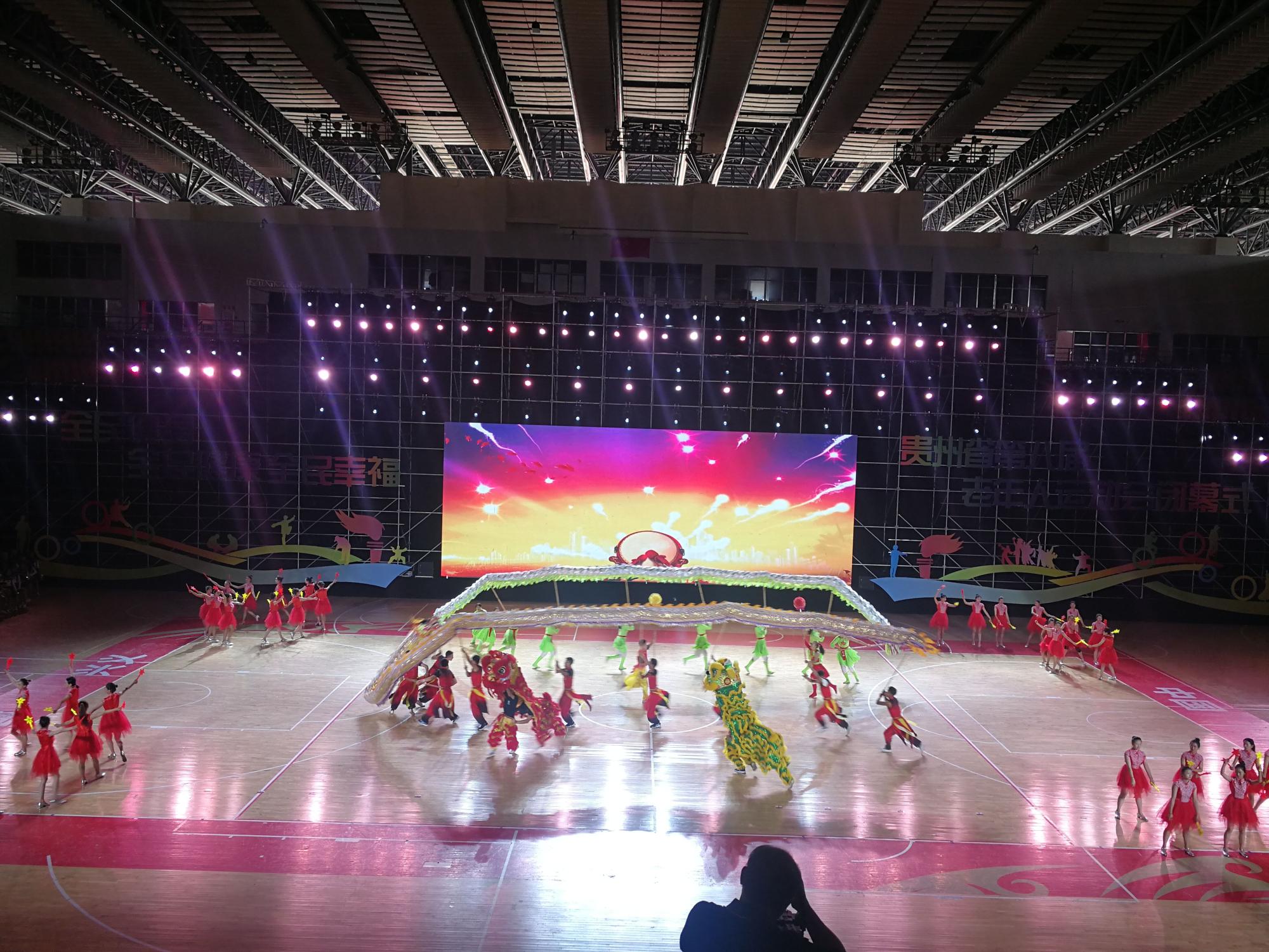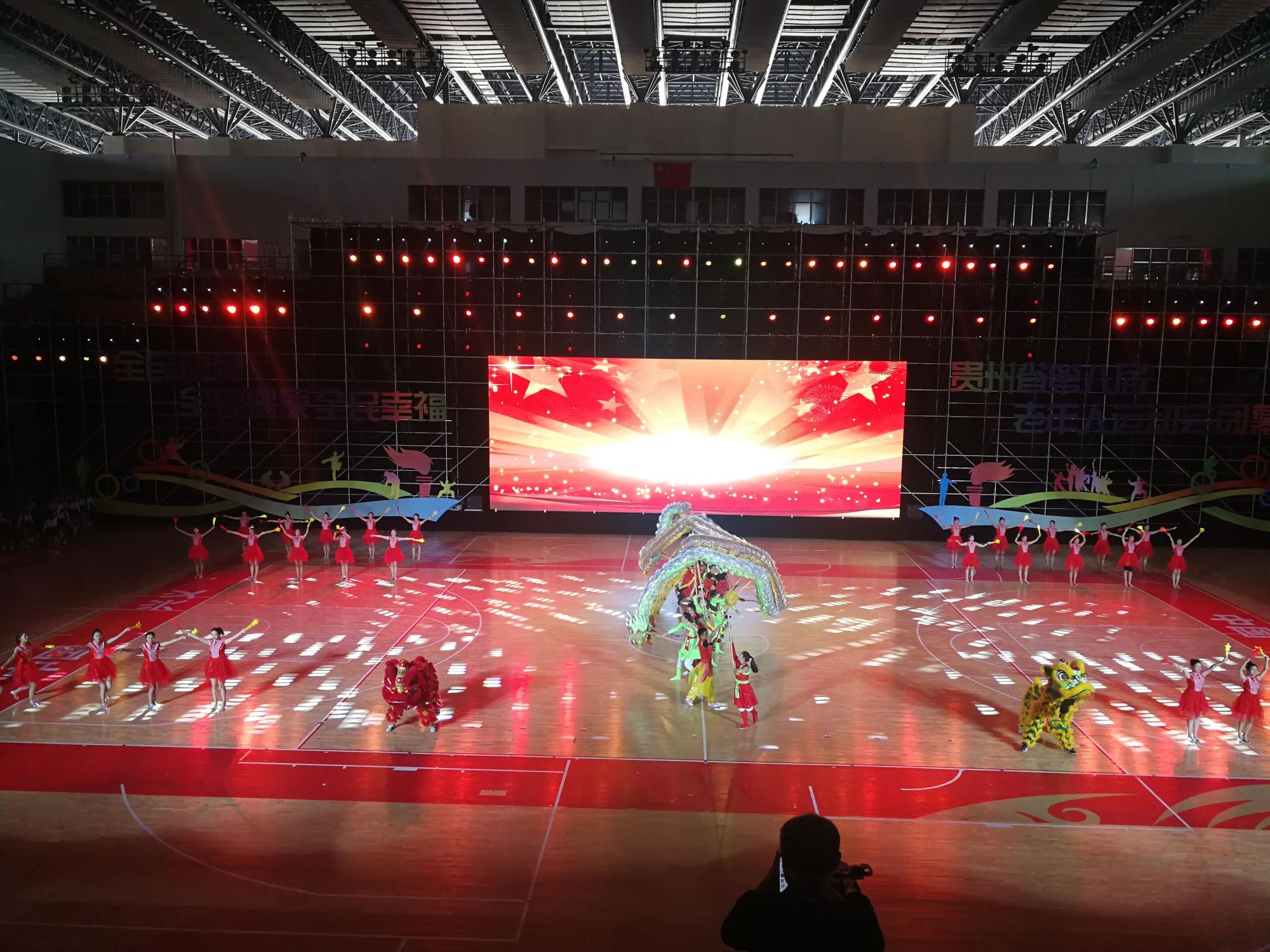 公司龙狮队受黔西南州体育局之邀参加闭幕式,由黄伟明经理、张昕老师及卢霞、张国祥两位助教同学带队参加了此次闭幕式表演。作为第一个开场的节目,主持人隆重介绍了公司的发展和龙狮队伍所取得的成绩。在舞台上龙狮表演套路编排新颖,音乐节奏感强,动作精彩,栩栩如生、惟妙惟肖。龙时而腾飞、时而婉转、时而追珠。狮子时而惊疑、时而嬉戏、时而活灵活现。龙狮的精彩表现赢的了台下的观众阵阵叫好和热烈的掌声。表演结束时龙狮摆出“70”的数字,来为新中国成立70周年献礼,也祝愿伟大的祖国越来越美好。