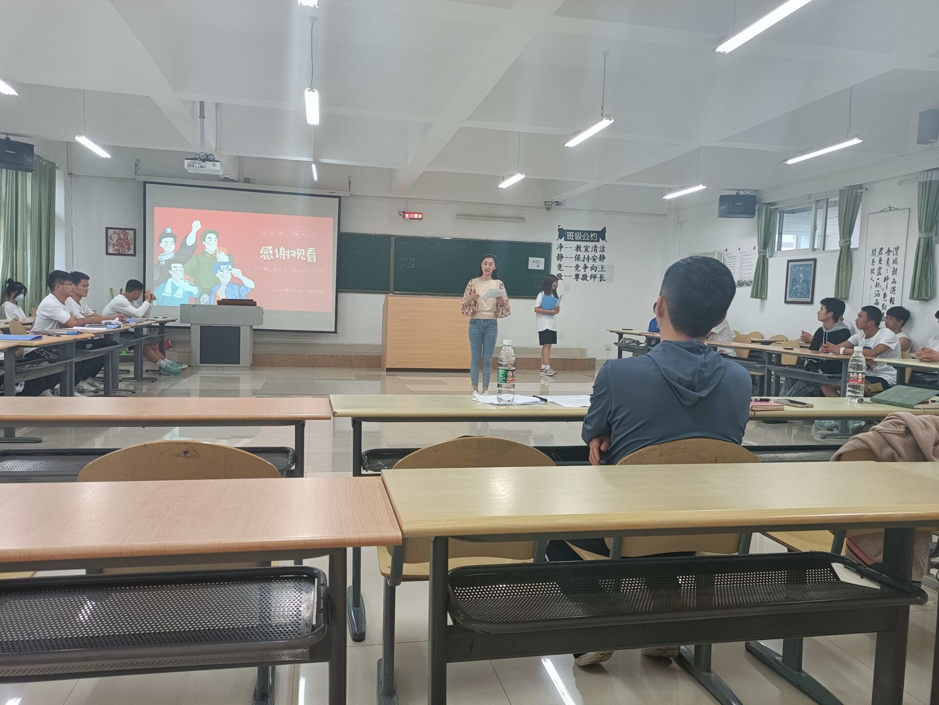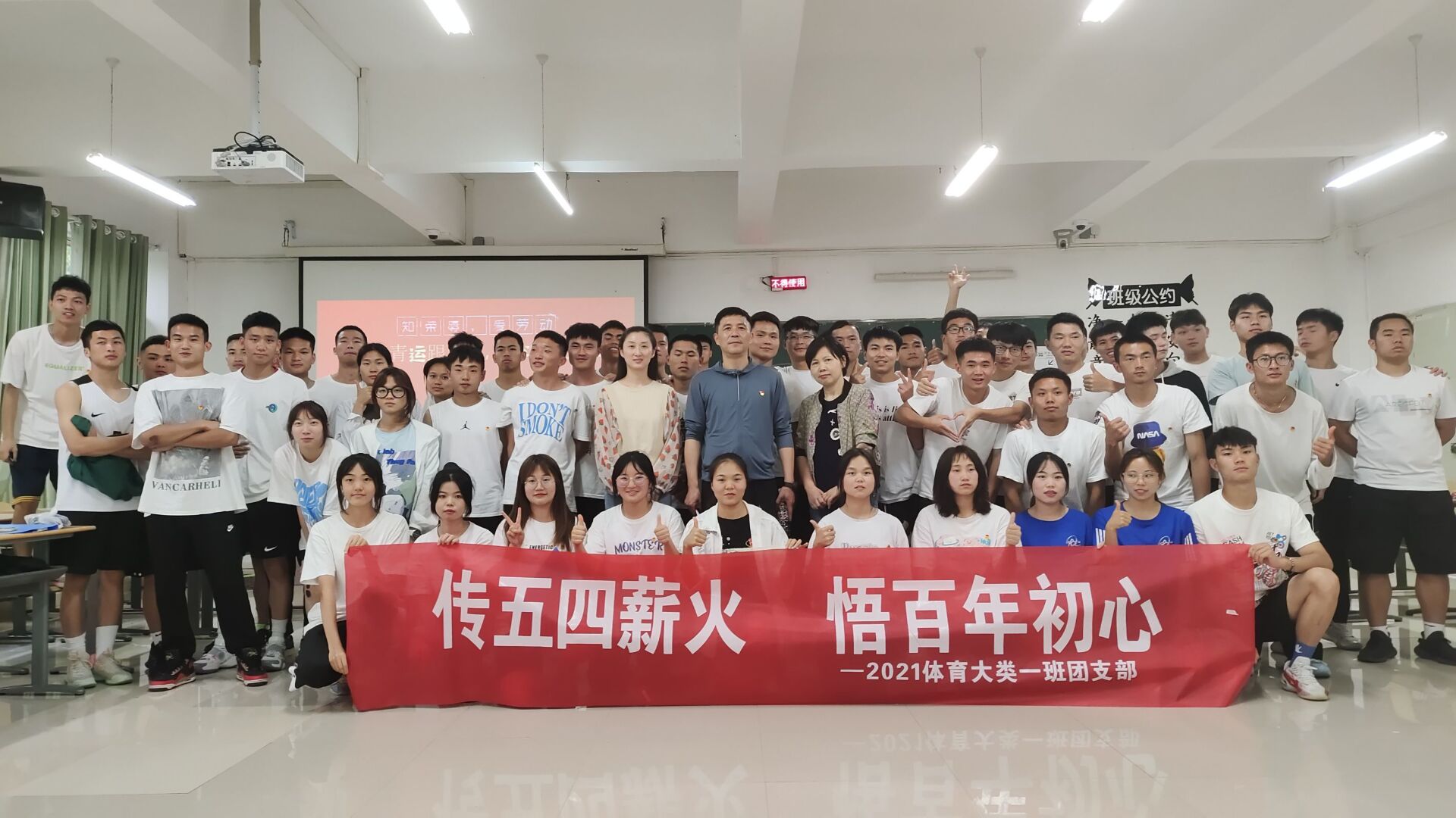 韩山、寇源和21级体育大类一班同学合影