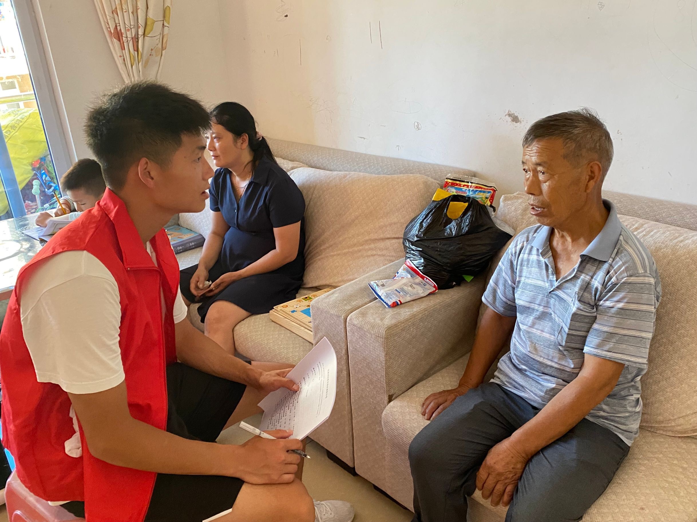 志愿者对居民进行采访