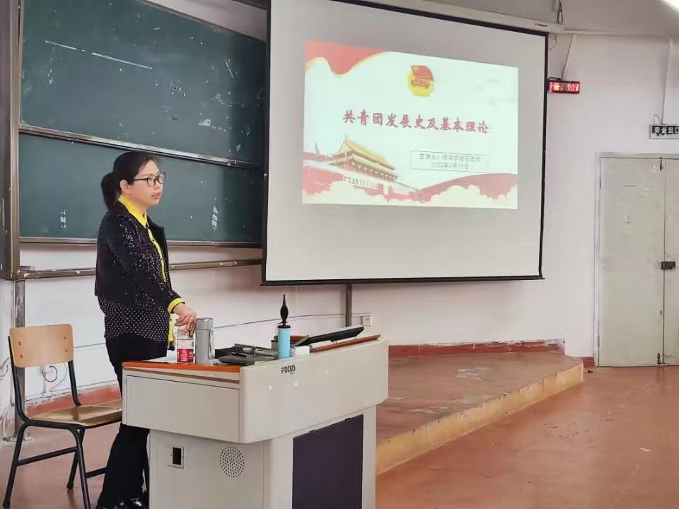 在庄严的共青团团歌声中,杨友娣以《中国共青团发展史及共青团基本理论》为主题开始了团课第一讲,杨友娣从中国共产主义青年团的诞生及发展历程开始讲解,接着阐述了团员青年必须履行的义务和享有的基本权利,带领同学们了解团旗、团徽及团歌,讲述了共青团的组织性质、组织成员、基本任务等,明确新时代青年的新使命;最后,杨友娣对新团员的入团程序作了详细的讲解,新团员的入团动机做出要求,让同学们时刻提醒自己,坚决拥护共产党的领导,热爱祖国、遵纪守法,做有理想,敢担当,能吃苦,肯奋斗的新时代青年,争取早日向党组织靠拢。