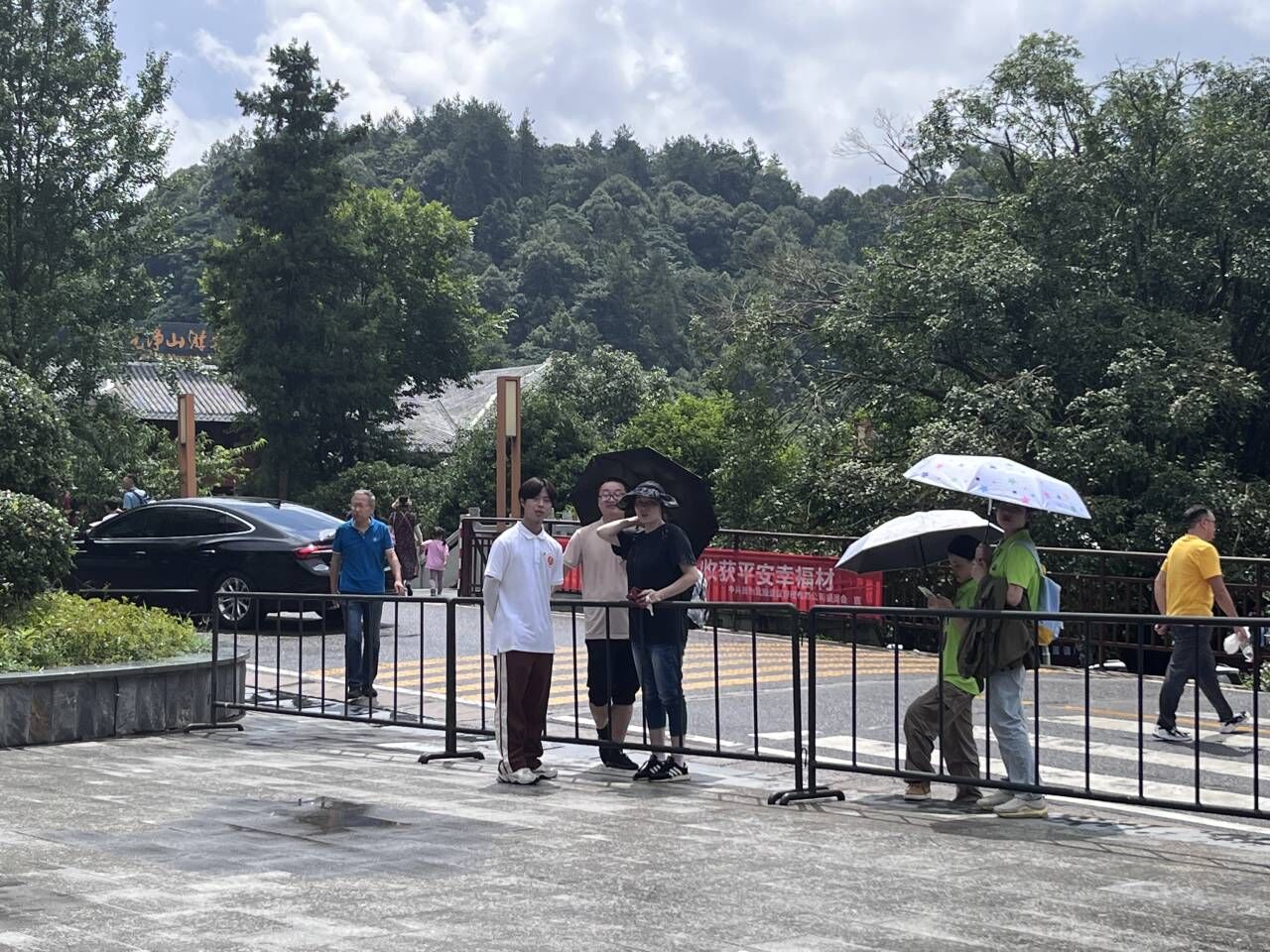 18日上午,天空下起淅淅沥沥的小雨,景区内外依然游人如织,来自全国各地的游客早早地来到检票口等待。志愿者们按照“三下乡”实践日程安排,准时到达志愿者岗位,帮助景区工作人员维持秩序,为游客答疑解惑。在志愿服务过程中,志愿者们耐心引导游客前往指定位置排队进入景区,认真站岗,防止插队等不文明行为出现,志愿者们还热情的为游客们介绍梵净山的悠久历史文化,让游客们感受到无微不至的关照。