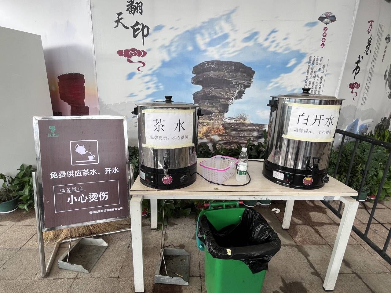 下午,由于天气炎热,气温较高,景区特意为游客们提供免费的茶水,为远道而来的客人们送上了夏日的清凉。