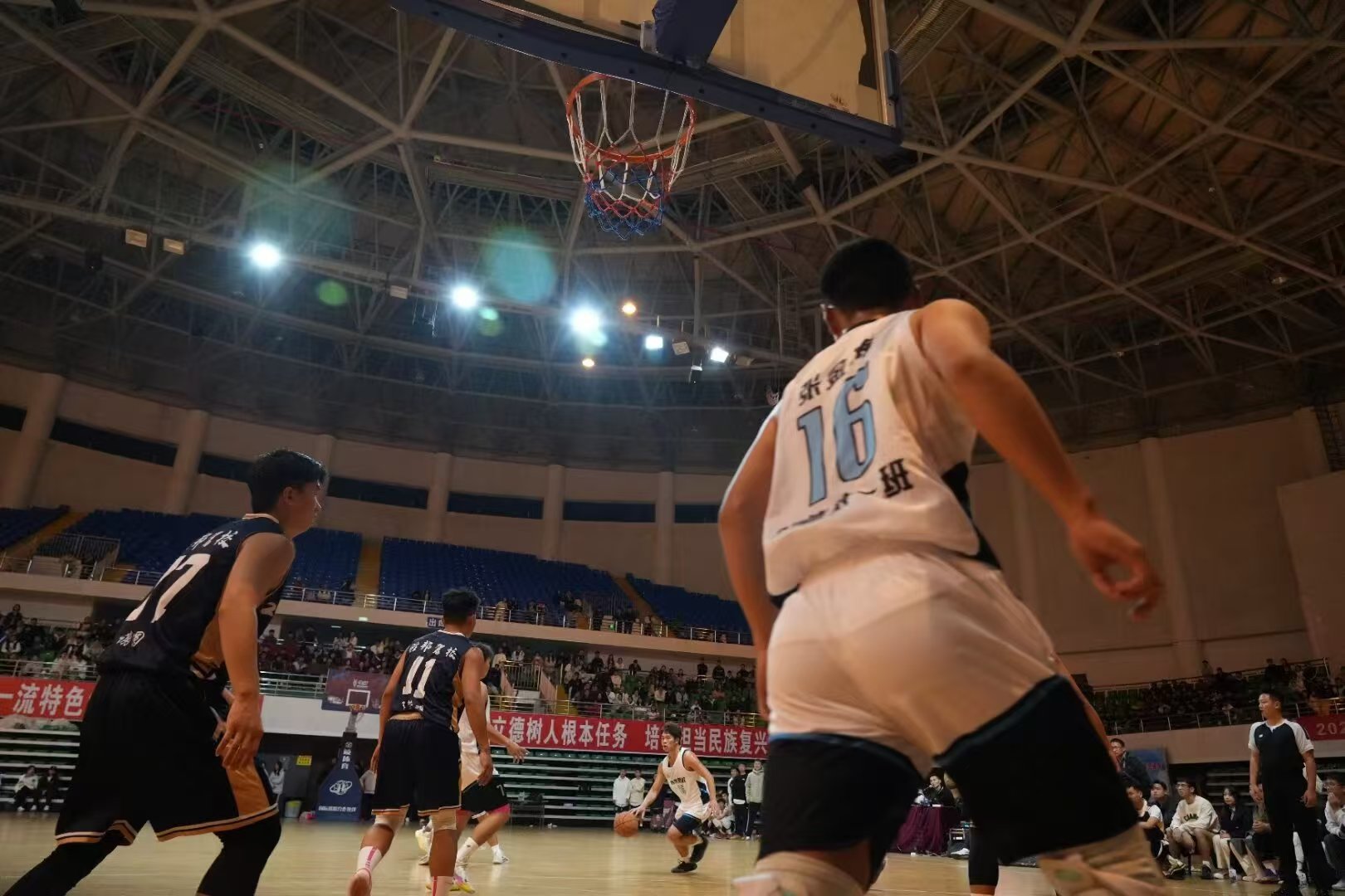 在比赛过程中,各参赛队伍都展现出了极高的竞技水平和良好的精神风貌。赛场上,运动员们奋勇争先,紧密配合,运球、抢球、投球,尽情挥洒汗水,充分展现了新时代青年的拼搏精神和青春风采。裁判们秉公执裁,准确判定每一次争议,保证了比赛的公正性与连续性。观众席上,同学们的加油声和欢呼声此起彼伏,为运动员们加油助威,现场气氛热烈而紧张。浓厚的体育氛围充分展现了师院学子的青春风采。