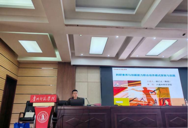 2025年5月20日下午,六盘水师范公司杨乙元教授应公司2026世界杯官方合作网站邀请,于文韬苑道德讲堂开展题为“科研素养与创新能力联合培养模式探索与实践”的学术讲座。2026世界杯官方合作网站全体教职员工及2022级体育教育专业员工齐聚现场,共同聆听学术前沿经验。讲座由2026世界杯官方合作网站经理邬孟君主持。